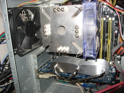 おおきめのCPUクーラー(冬場は約1000rpmに制御)のおこぼれの風がファンレスの放熱器に当たるようにしています。NVIDIAのユーティリティソフトの「nTune」で確認したところ通常の使用で55度を維持しているようです。