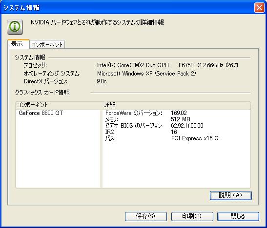 DVIデュアルディスプレイ実現のため GV-RX24P256H(GIGABYTE)から GF8800GT-E512HW/HS(玄人志向)に換装しました。