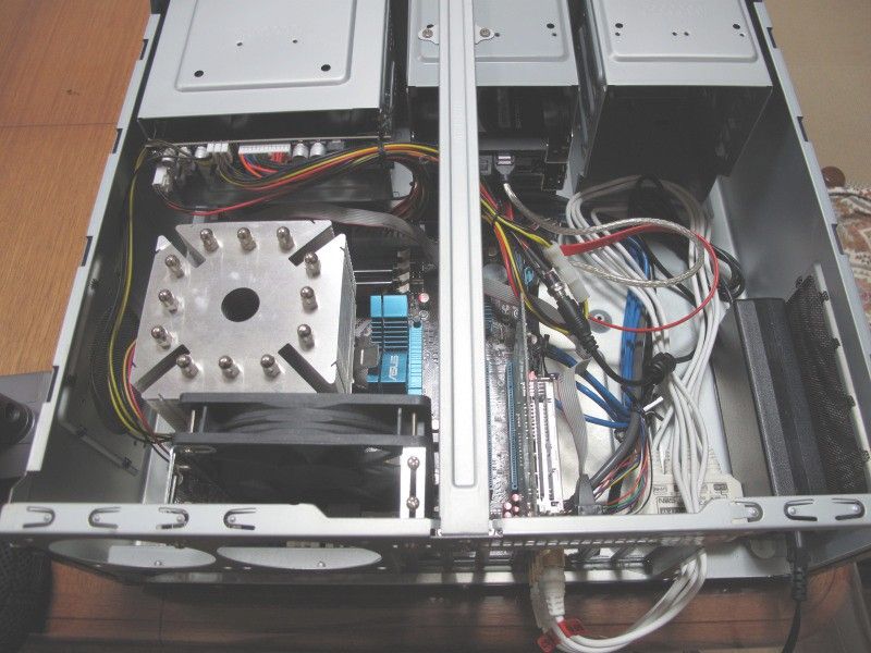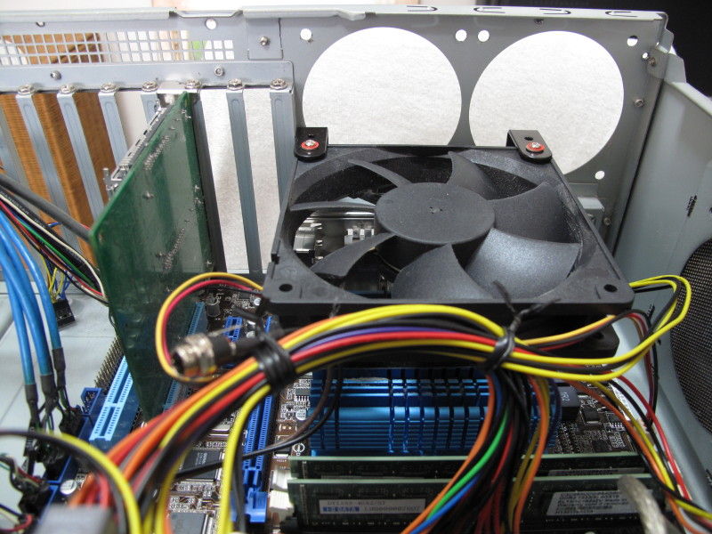 O/S : WindowsXp SP3 32bitFANは静音や消費電力の面で増やしたくないので、1機のFANでCPUとチップセットを同時に冷やす配置で固定しています。 こういう時にL字金具が重宝します。