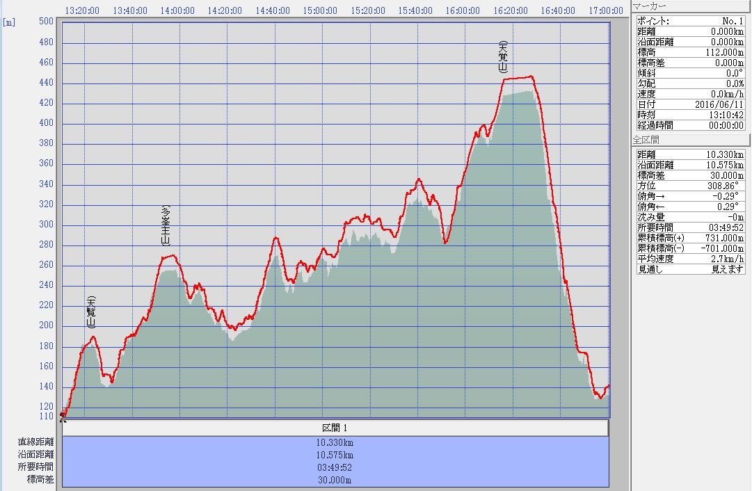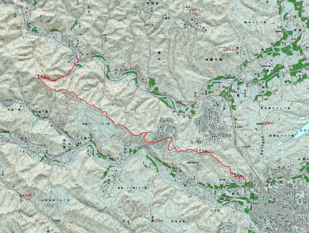 大高山へ時間の都合で行けなかったのは残念。 こんどは、東吾野駅→天覚山→大高山→吾野駅で飯能アルプス完結予定。 飯能アルプス(天覧山から伊豆ヶ岳)通しだと、25kmほどですが、40kmの外秩父七峰コースの累積標高を軽く越えそうです。