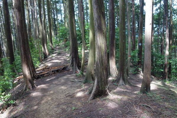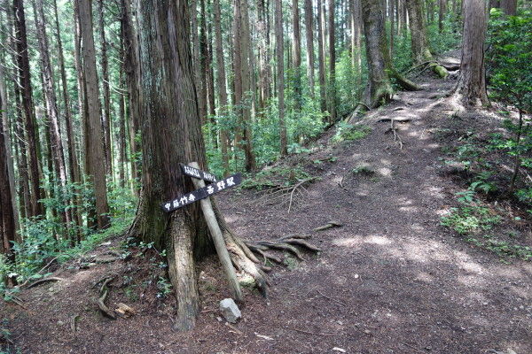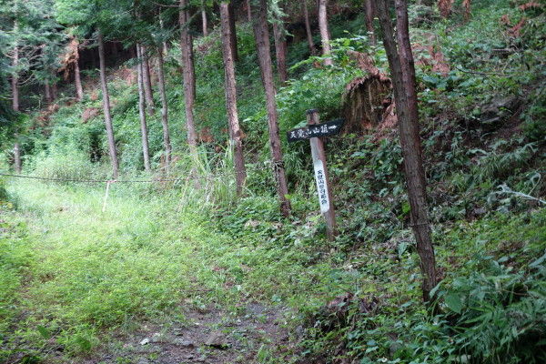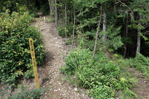 しばらく未舗装の林道を登ってから右の山道に入ります。
