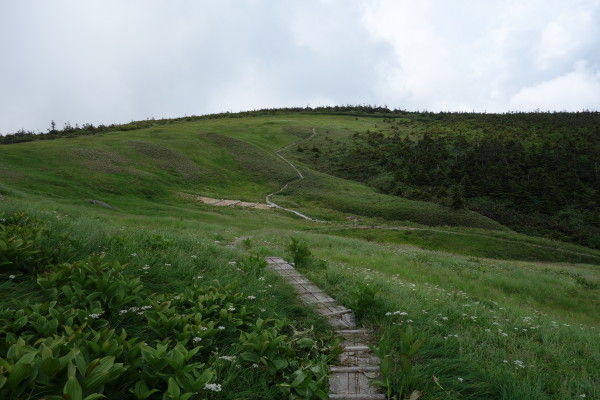 よくみる写真で、山頂全体こんな風な林かとおもったら、ここ以外の山頂の景色は見事な湿原でした。