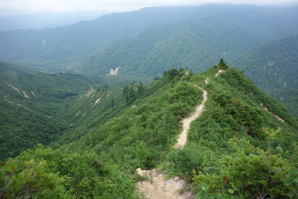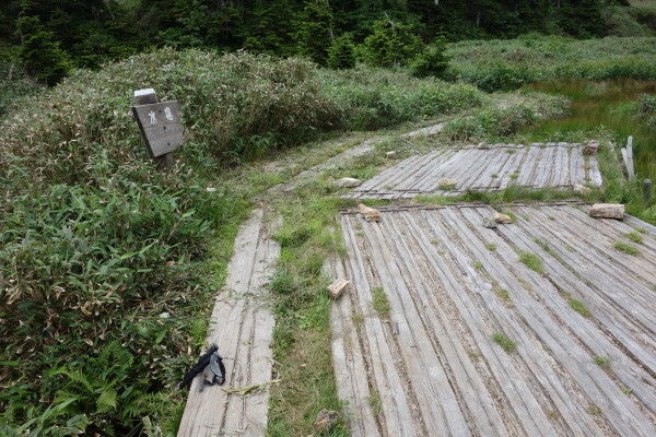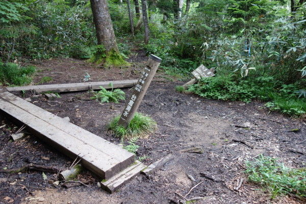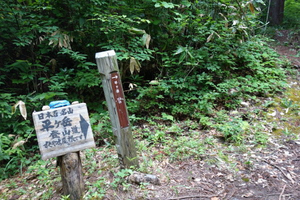 途中、平ヶ岳沢方面に降りる登山道への分岐があります。