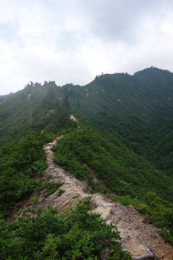 06:16 すこし登り続けると、展望が効くヤセ尾根に出ました。