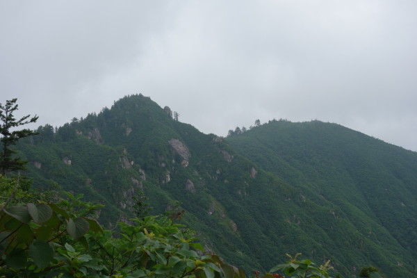 15:28 下山途中、おもしろい形の山(ミョウカン山)が見えました。