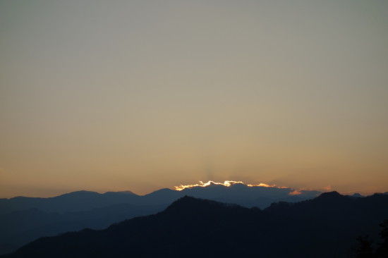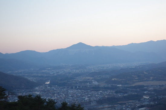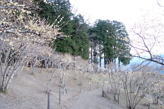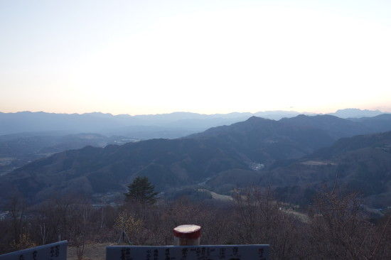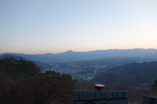 登る途中のロウバイを見ながら、その後、奥社にお参りしてからですが、もう甲武信岳の方に日が落ちてました。 ちょうどロープウェイも下り最終便がいった直後なのでロウバイ園含めて山頂には誰もいませんでした。