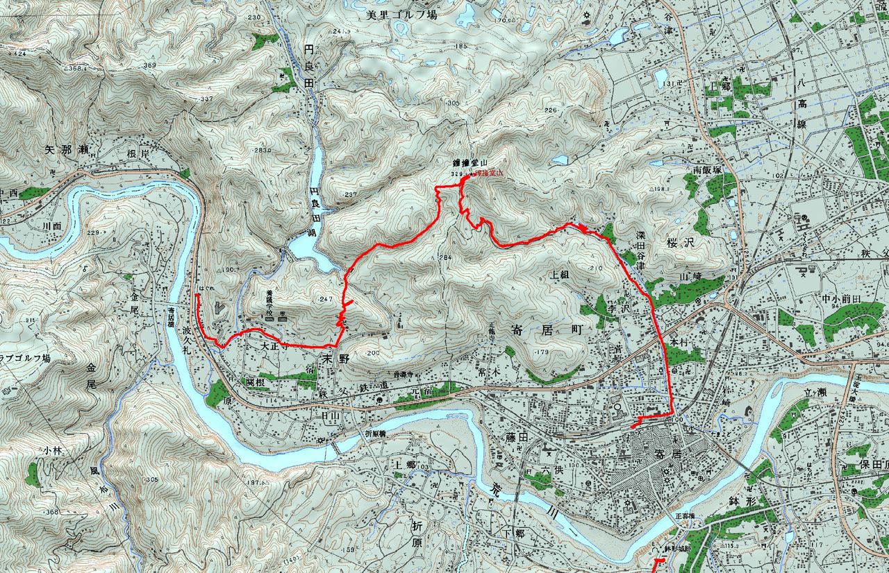 ここから少林寺の羅漢山を経て、円良田湖(つぶらだこ)を左に見ながら、鐘撞堂山に登り返します。 山頂からは大正池方向に下り寄居駅に至るコースとなります。