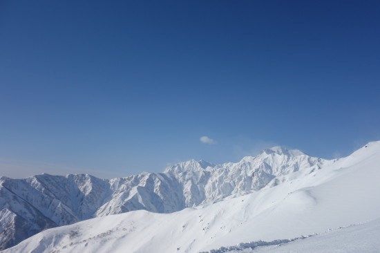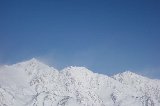 八方池山荘付近から。 白馬三山もきれいに見えました。 今日も強風で、山頂付近は雪煙が発生しているのが見えます。