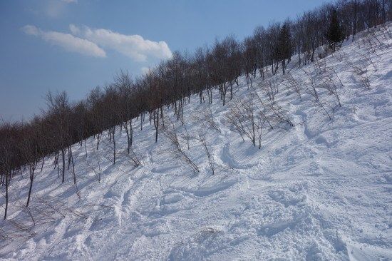 危険すぎるので最初はゲレンデ端のパウダーを滑りました。