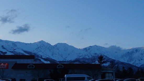 17:20 恒例のガストで夕食前に、本日やっと白馬三山が白馬の街から見えました。