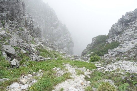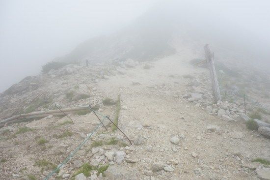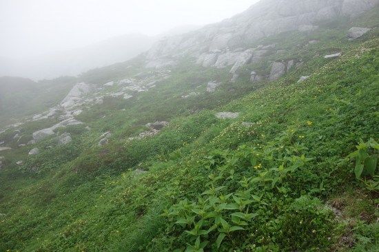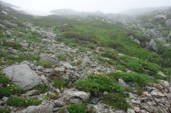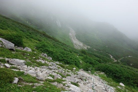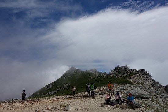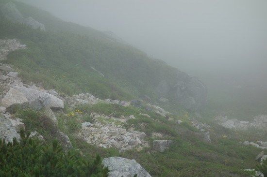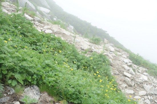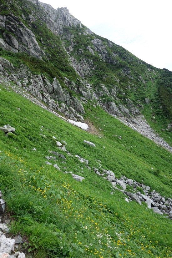 宝剣山荘まで、往きは中岳経由でしたが帰りは中岳の巻道を通ってみます。