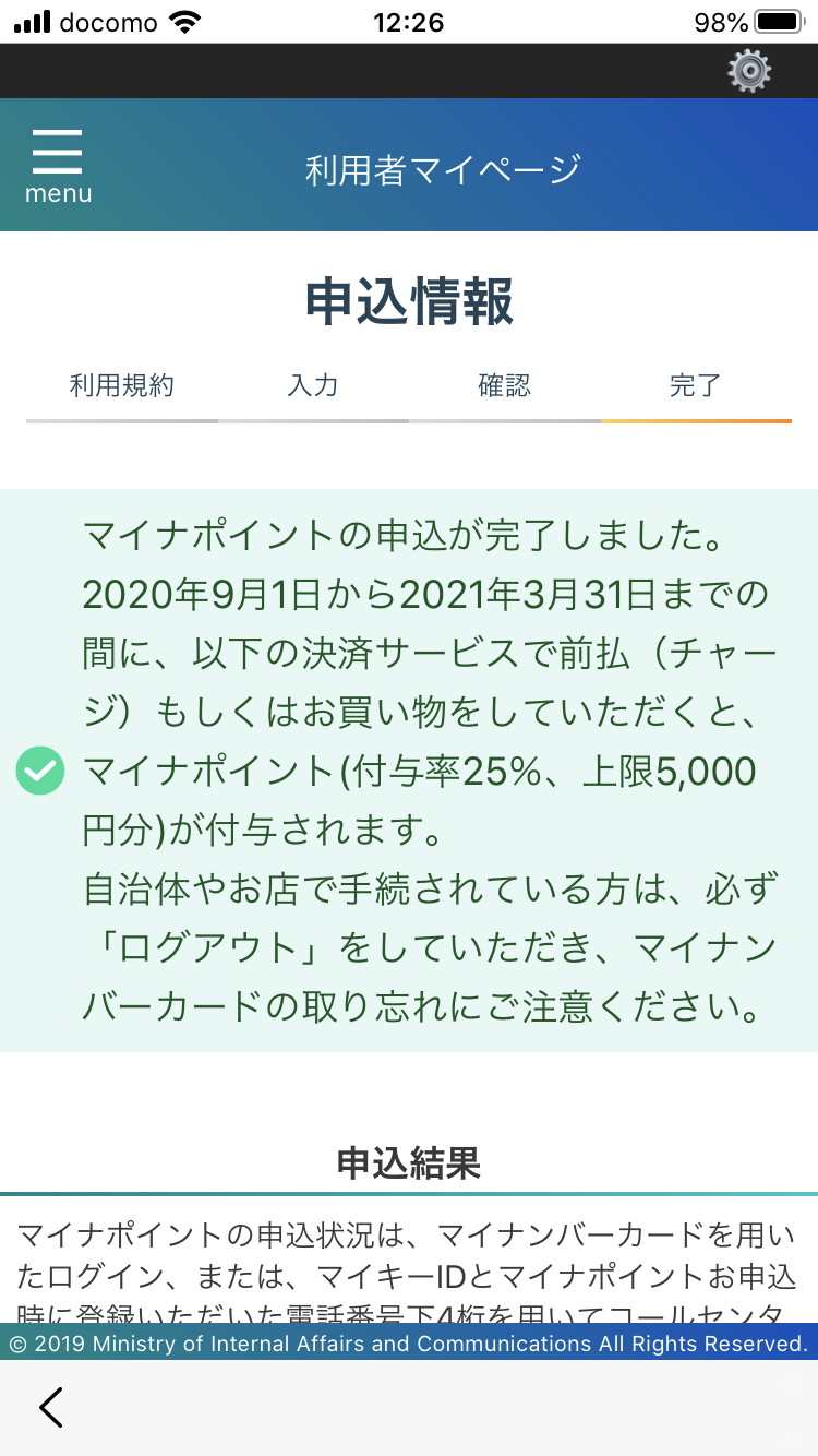 2020/07/18 Suicaでマイナポイント申込 スマホ(iPhone)を使ってSuicaでマイナポイント申込みしました。 何回もやるものではないですが、参考で画面ログを残します。 前提として、マイナンバーカード取得済、マイキーID発行及び設定、JRE POINTサイトでSuica登録済であること。 「その他いろいろ」カテゴリの最新記事